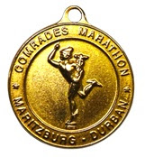 Medalha da Maratona dos Camaradas de Ouro. A ilustre medalha de ouro da Comrades foi introduzida pela primeira vez em 1931 e foi concedida aos primeiros 6 atletas a cruzar a linha de chegada. Isso foi estendido aos primeiros 10 atletas em 1972. Foi somente em 1983 que uma medalha de ouro foi concedida à primeira mulher a cruzar a linha. Isso foi aumentado para 3 em 1988 e, em 1995, as 5 melhores mulheres receberam ouro. Em 1998, as 10 melhores mulheres receberam medalhas de ouro pela primeira vez.